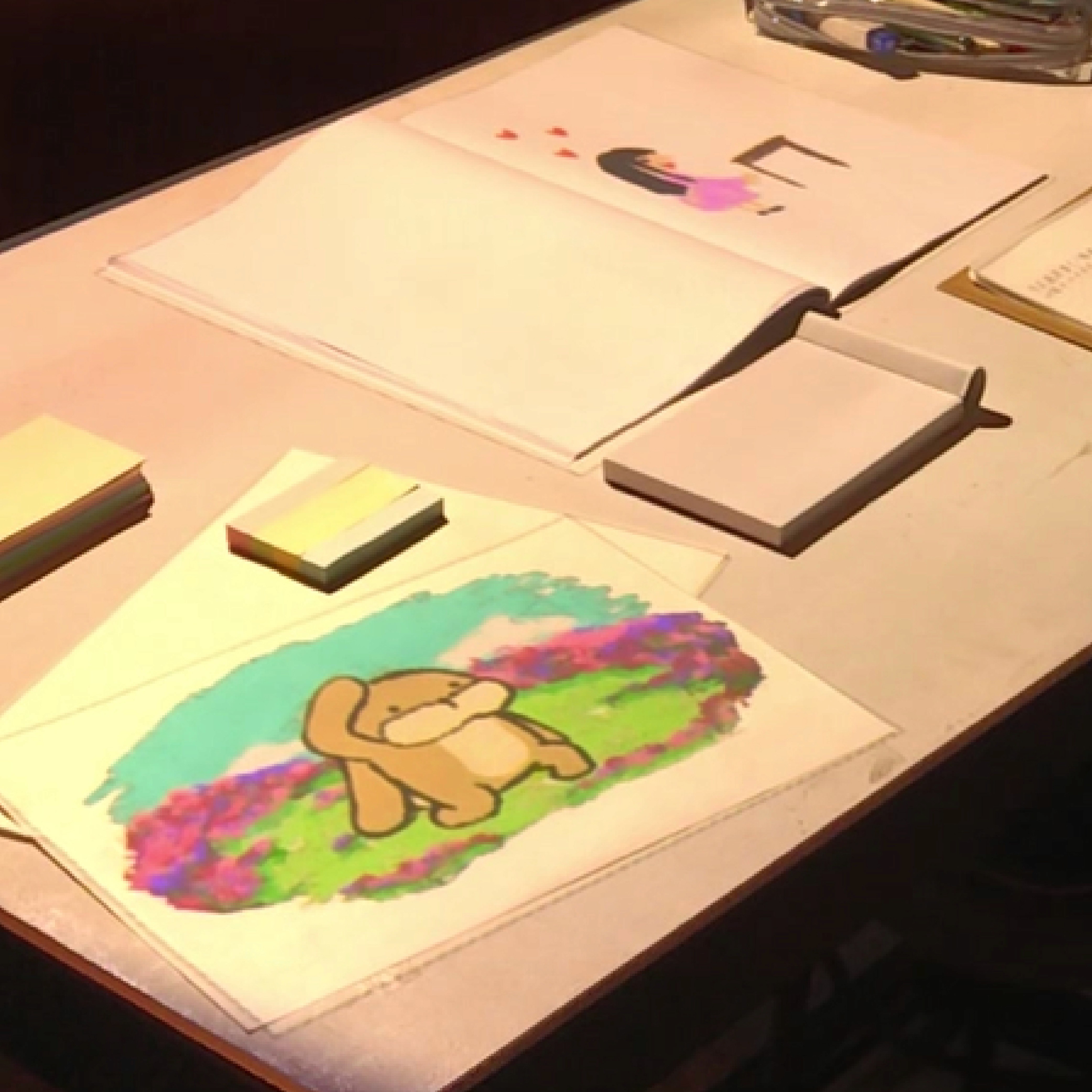 以「成長故事」 為概念發想。當桌子上的日記翻到有顏色的頁面,隨著感應到的顏色播放對應的投影動畫,象徵 著隨著日記時間的推移,桌子如同成長的我們一樣, 每天都會有變化。
