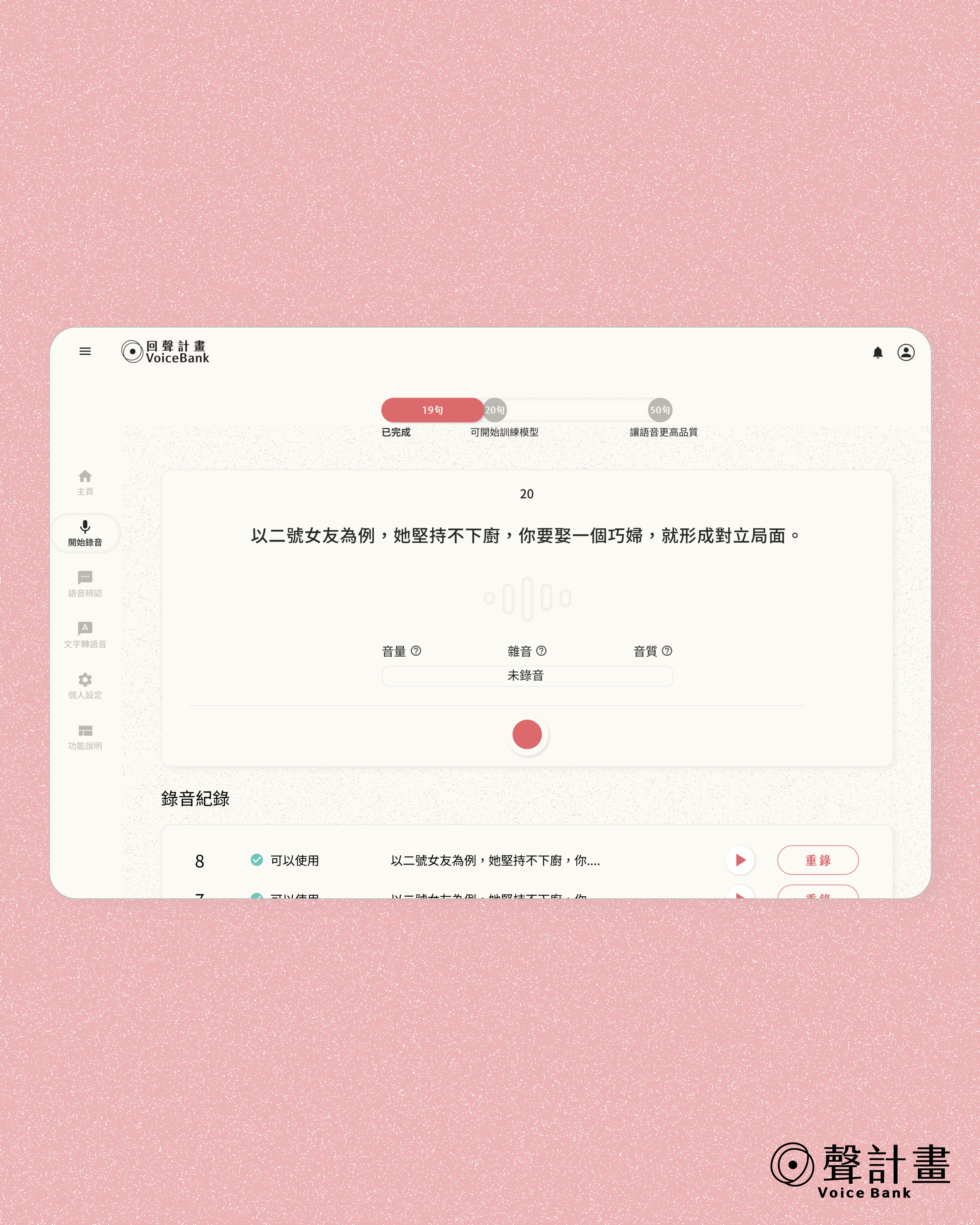 從聲音錄製到未來的使用方式,我們思考如何讓 VoiceBank 的介面更直覺,流程更簡單,確保病友能夠輕鬆保留、想要使用自己的聲音。
